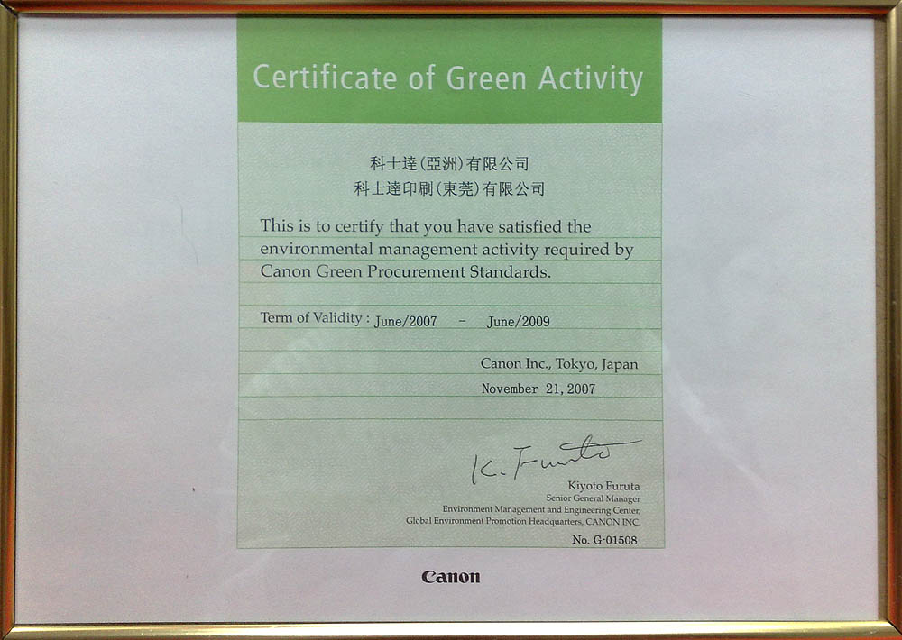 在环保层面上,从原物料采购、生産过程、以至整体厂房环境方面,我们均符合国际标准,并积极落实绿色采购。
